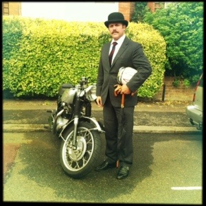 Then there was the Distinguished Gentleman’s Ride. Last year was the inaugural kick off with 70 riders. The organisers had hoped to double the numbers this year. The over quadrupled the attendees to create the largest attended DGR on the plant. Sorry Oz, the pomes beat you again. There are so many videos on YouTube, Vimeo, MCN, etc. Do a search. If you you see the man with the handlebar moustache, bowler and pinstripe suit, that would be me.